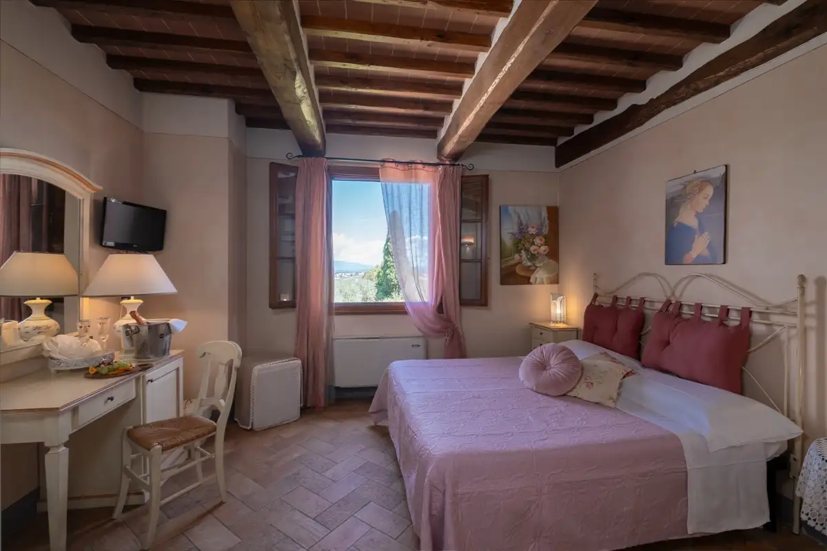 A stay in the Monte San Savino Room is an invitation to be won over by the charm of the Tuscan landscape that opens from the window.